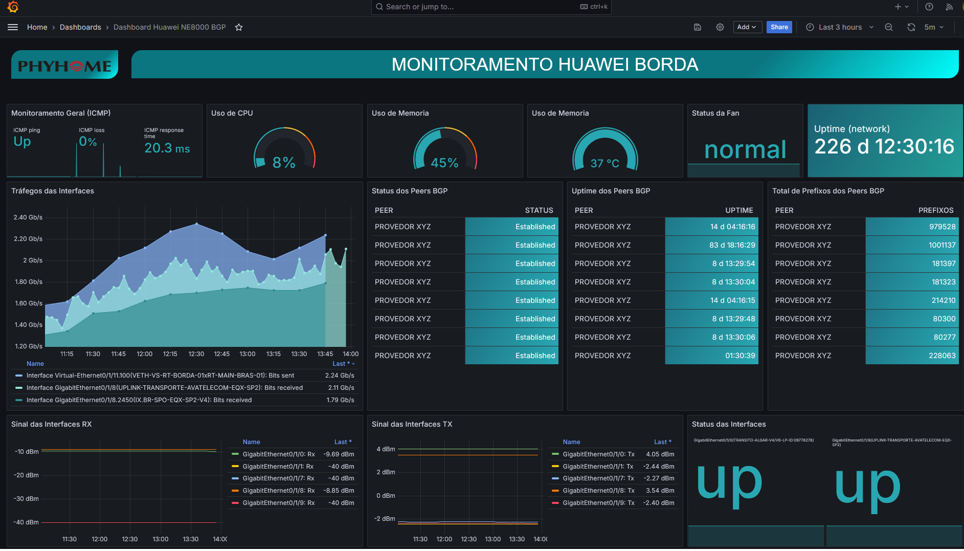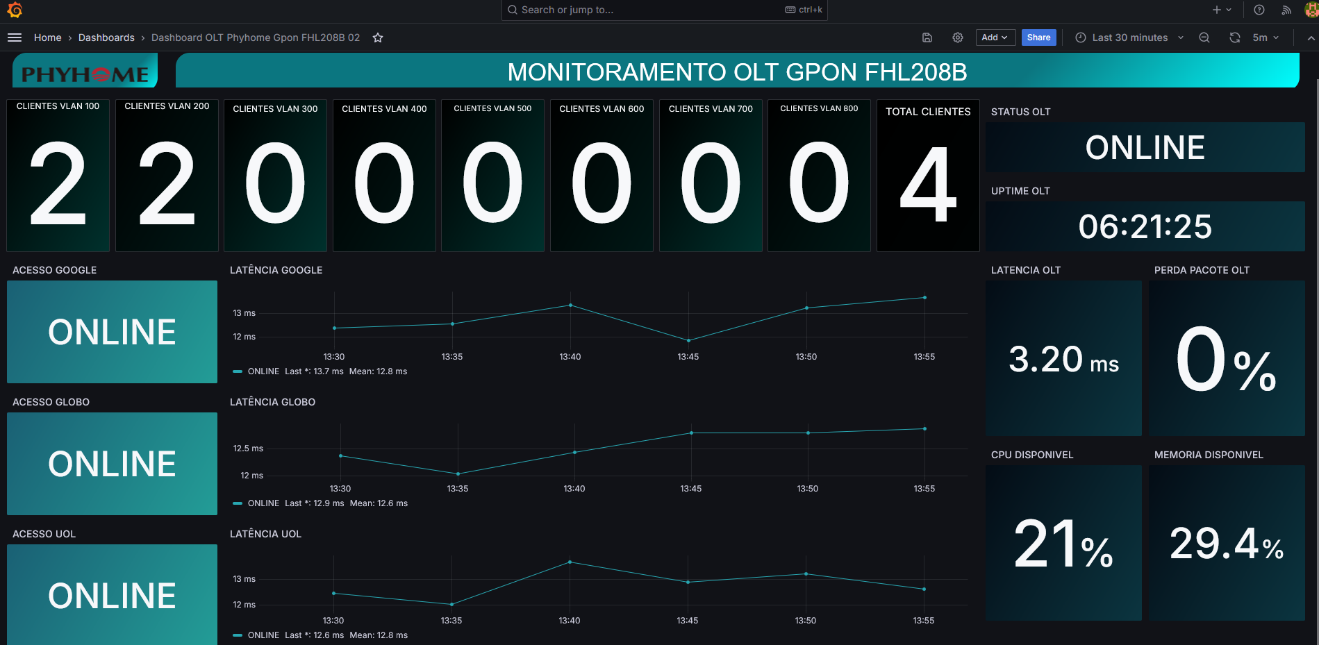 📡 Destaque para o projeto Phyhome Plus, uma solução completa de monitoramento e observabilidade com Zabbix e Grafana, que desenvolvi do zero, voltado ao mercado de ISPs no Brasil, e que consolida minha atuação em ambientes de alta disponibilidade, performance e visibilidade técnica.