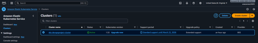 Provisionamento automatizado do Control Plane do Kubernetes gerenciado pela AWS. O código abstrai a complexidade da instalação manual, entregando um cluster atualizado, seguro e integrado nativamente com o IAM para controle de acesso (RBAC).